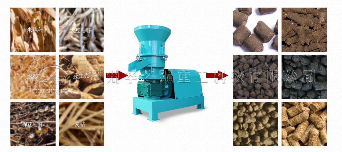 The Flat Die Granulator Machine uses the straight guide transmission form, which makes the roller self-rotating under the action of friction force. The powder material is extruded from the hole of the mould press by the roller, and the cylindrical pellets come out through the disc (The cylindrical pellets length can be controlled by the cutter. Meanwhile, the cylindrical pellets can be polishing into round shape granules). The Flat Die Granulator is mainly used in the production of bio organic fertilizer pellet making, and the processing of feed pellets in breeding industry. Has the characteristics of less power consumption, no vibration, large output and low noise. It can be widely used in fertilizer, feed, aquaculture and other fields.