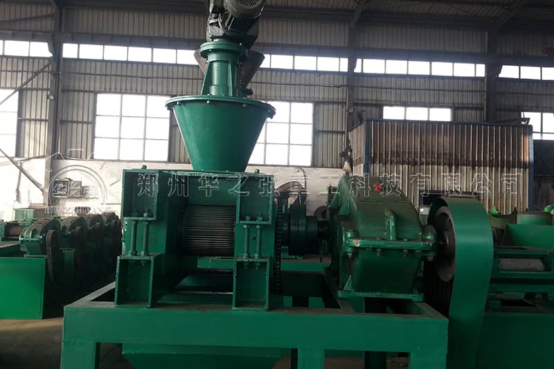 HD series hydraulic press granulator adopts dry roller press technology, which HD series hydraulic counter-roller granulator adopts dry rolling technology, mainly relying on pressure feeding method, force material through two opposing rotating roller gaps and compress into pieces. In the process of rolling press, the actual density of the material can be increased by 1.5~3 times, and the powder material with water content less than 5% is compressed into pieces or Lump, thereby achieving granule strength requirements. After crushing and shaping, the lump material is turned into granular that meets the requirements of application. It is mainly suitable for chemical fertilizer materials (potassium sulfate, potassium chloride, potash fertilizer, calcium carbonate, potassium nitrate, ammonium phosphate, etc.);Chemical raw materials (antioxidant, Zinc Oxide, metal powder, plant fuel, etc.), and the compression granulation process of environmental materials.